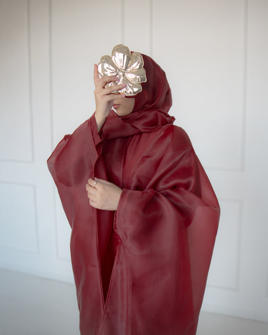 Womens Abaya Khadeejah Deep Burgundy Satin Lace Abayas