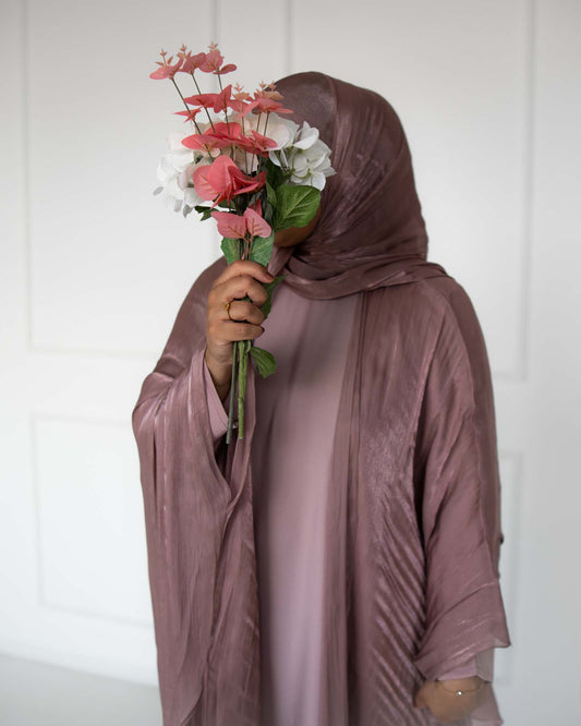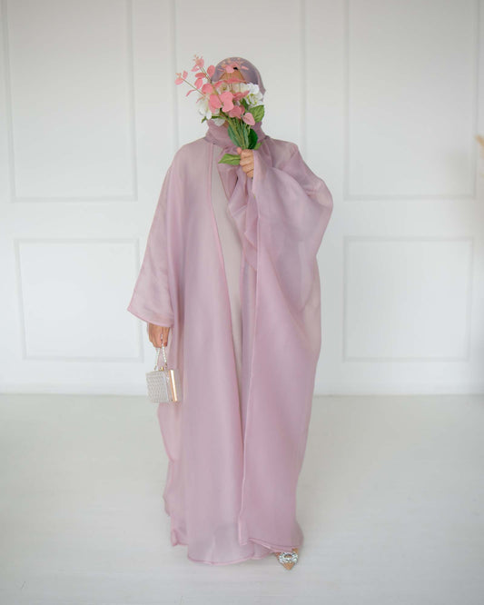 Sold outHuda Dusty Pink Organza Cape Abaya