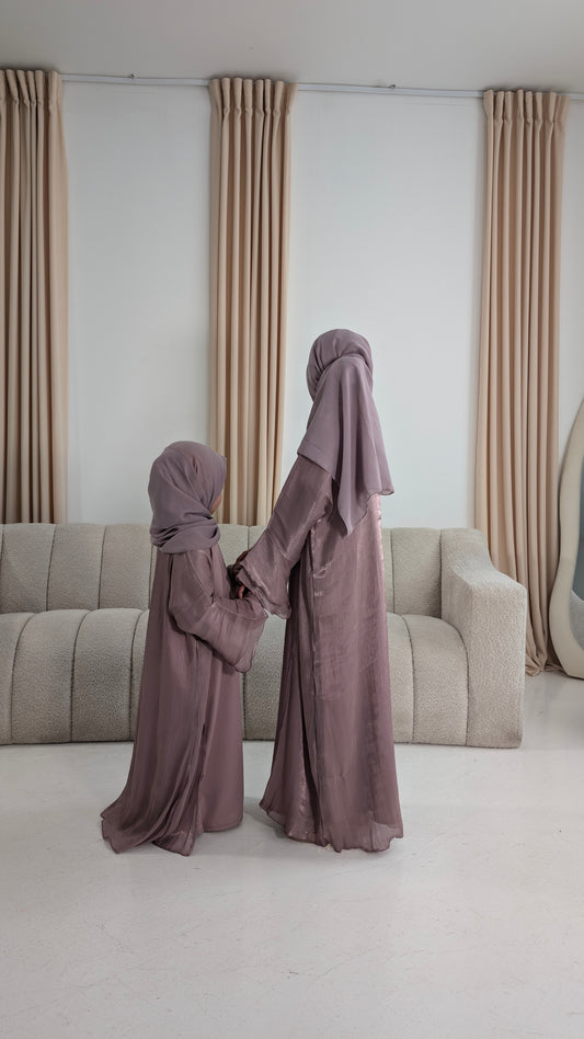 Junior Girls Amina Dusty Pink Flared Tiered Sleeve Organza Abayas