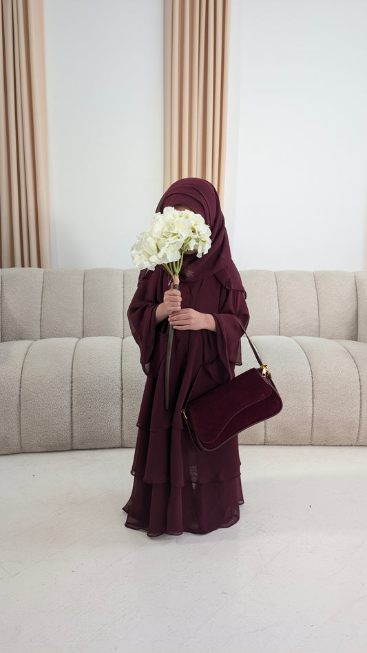Girls Abaya Inayah Junior Girls Burgundy Chiffon Tiered Abayas