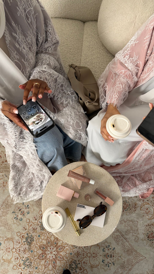 Alma Dusty Pink Chiffon Lace Panel Abaya