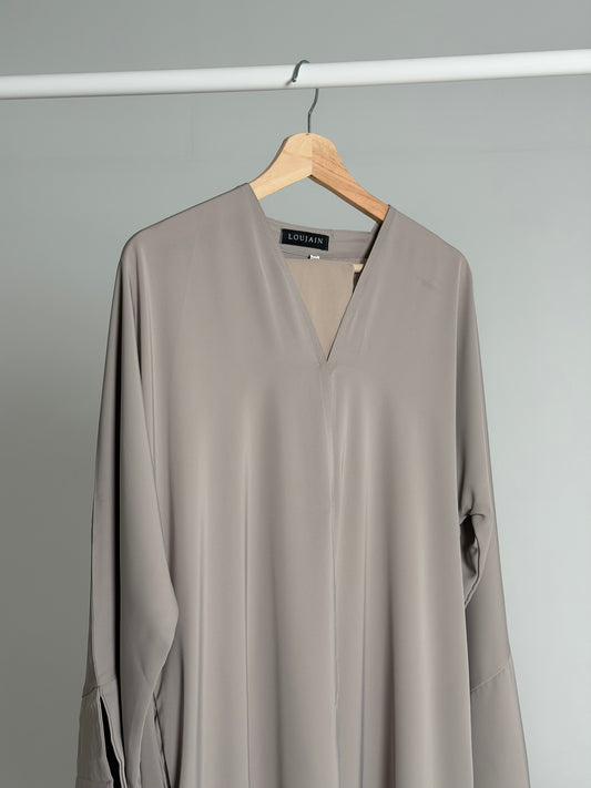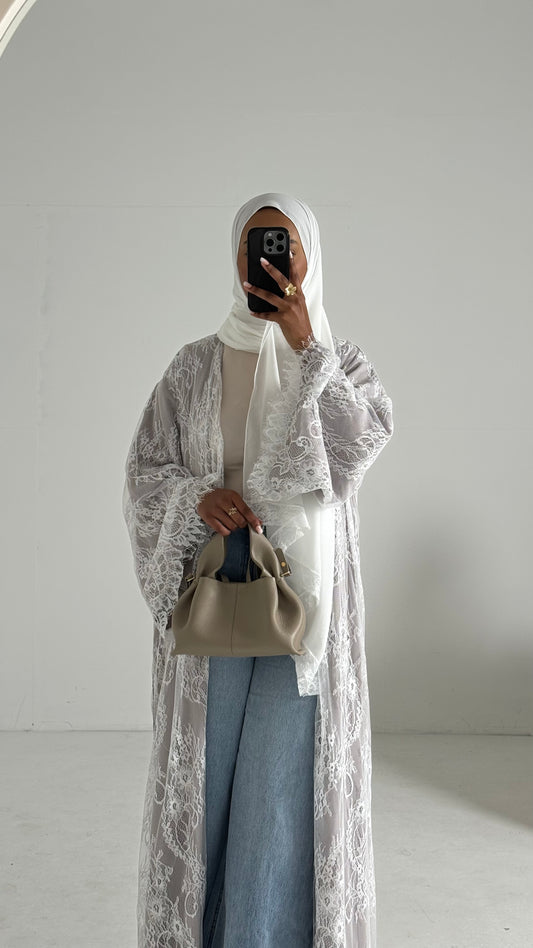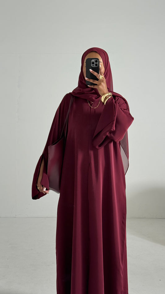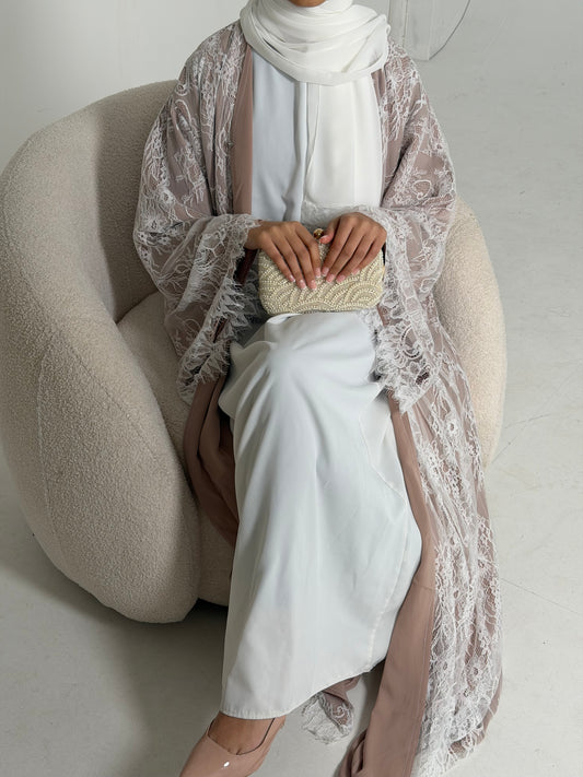 Alma Dark Mauve Chiffon Lace Panel Abaya
