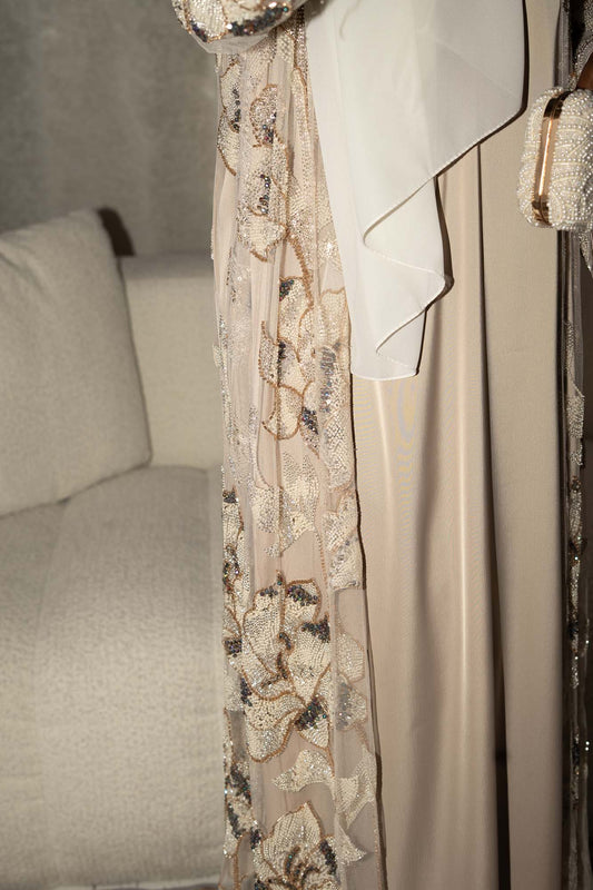 Zariyah Sage Green Embroidered Dupatta Abaya