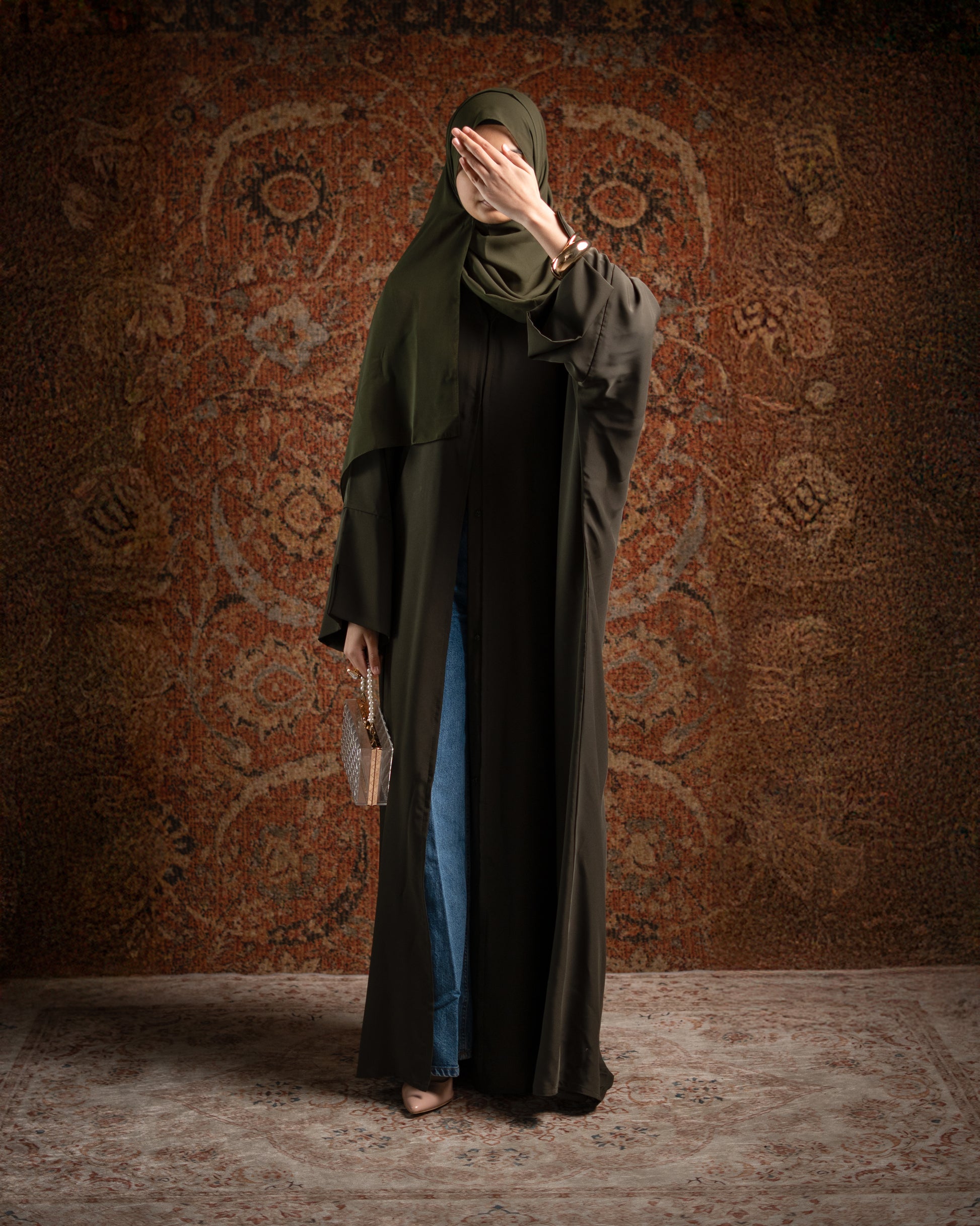 Sienna Sage Green Organza and Chiffon Cape Abaya