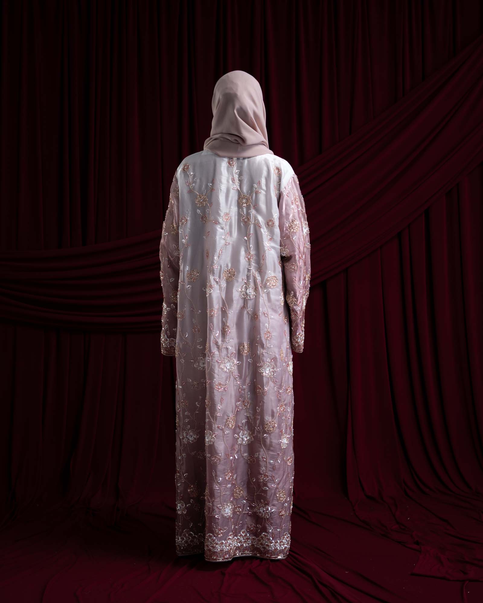 Elevate your modest wardrobe with this luxurious embroidered organza abaya, designed for timeless elegance and modern sophistication. Crafted from premium organza with intricate floral embroidery, this ombré features delicate metallic thread detailing that adds a subtle shimmer and unique detailing on the  sleeve. The flowing maxi silhouette offers graceful movement, while the coordinating hijab completes the refined look.