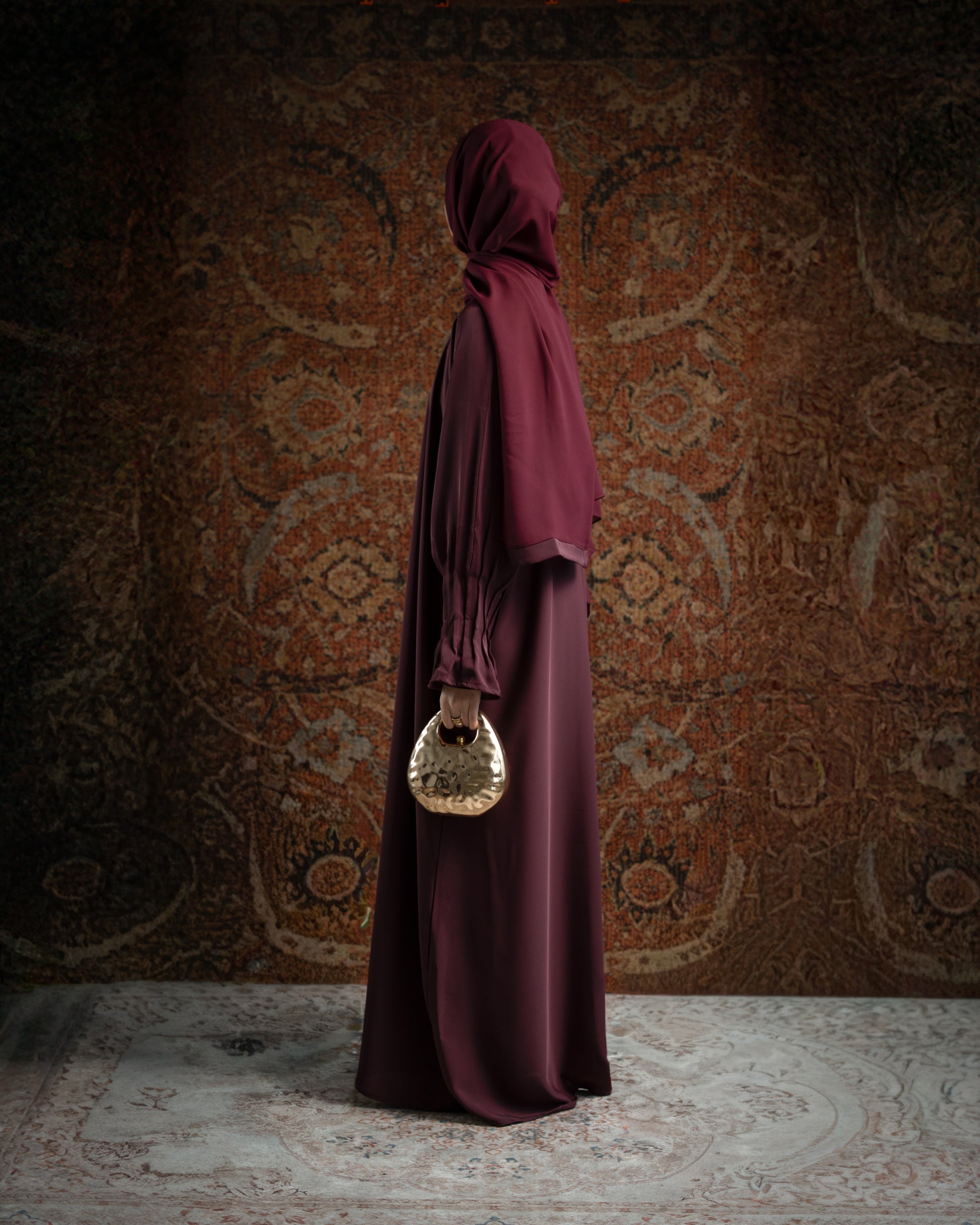 Inara Plum Pleated Sleeve Essential Closed Abaya