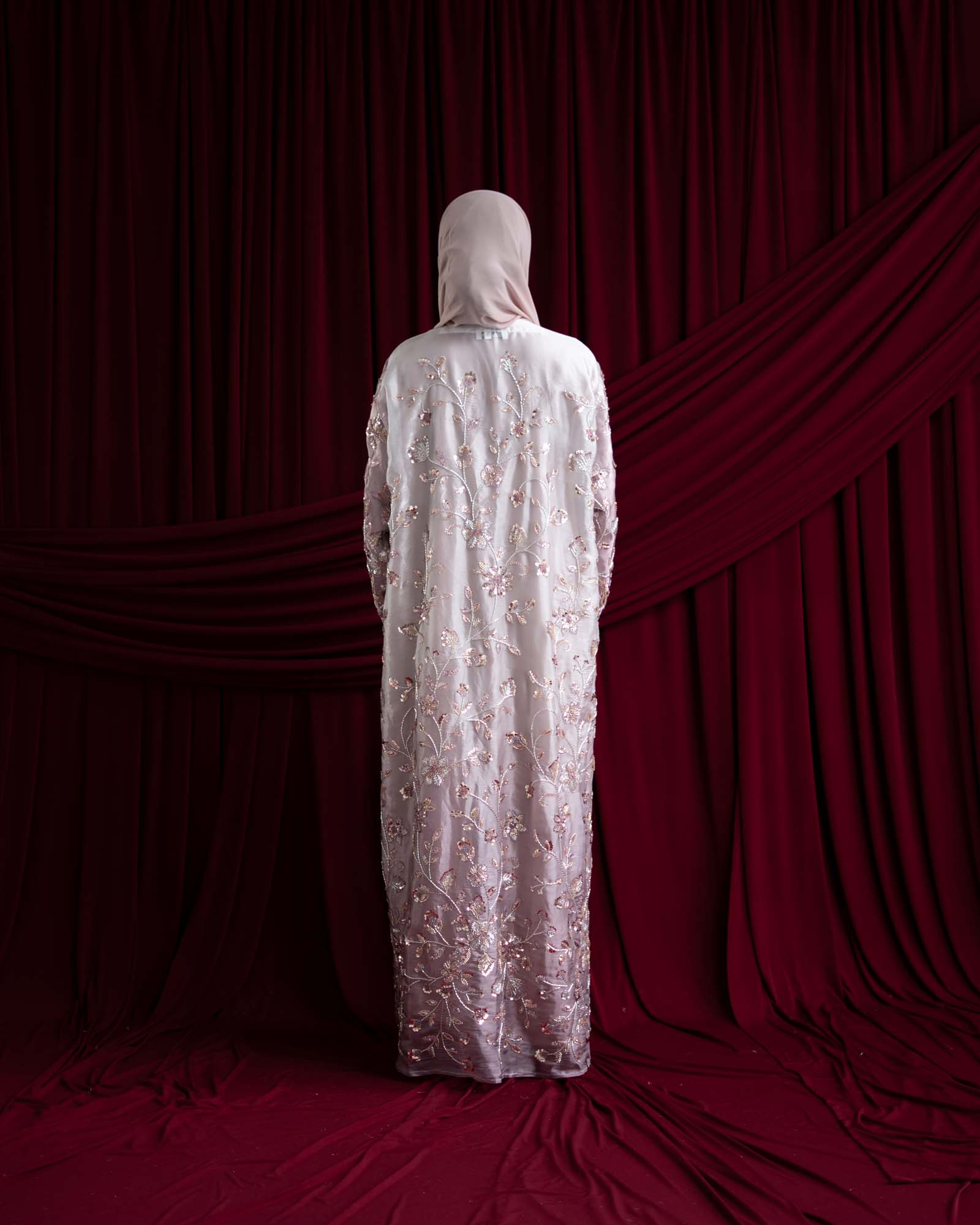 Elevate your modest wardrobe with this luxurious embroidered organza abaya, designed for timeless elegance and modern sophistication. Crafted from premium organza with intricate floral embroidery, this ombré features delicate metallic thread detailing that adds a subtle shimmer. The flowing maxi silhouette offers graceful movement, while the coordinating hijab completes the refined look.