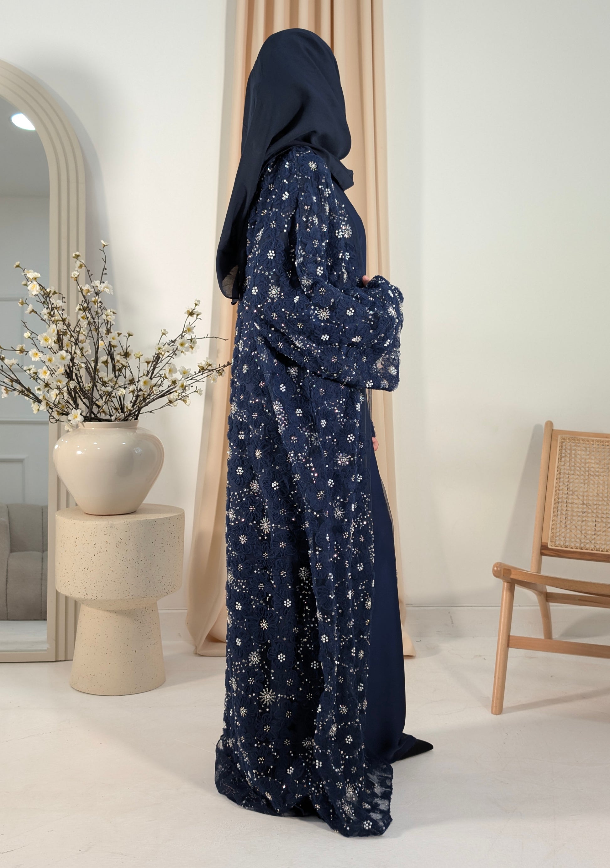 Womens Abaya Naila Dusty Blue Organza Beaded Butterfly Abayas
